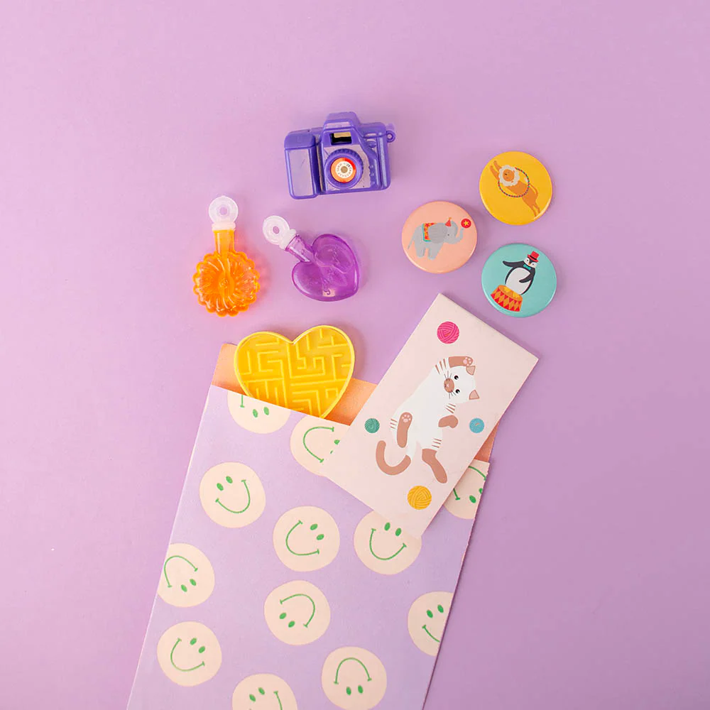 Roulement de tambour ! Installez-vous confortablement, le spectacle va commencer ! Ajoutez une touche de magie à vos fêtes avec ces adorables badges cirques signés My Little Day. Parfaits comme petit cadeau invité ou pour garnir une pochette surprise, ces badges aux motifs aléatoires mesurent 3,2 cm de diamètre.Parfaits pour un anniversaire cirque, pour sublimer votre look ou comme cadeau pinata, ils feront le bonheur des Mr Loyal en herbe !