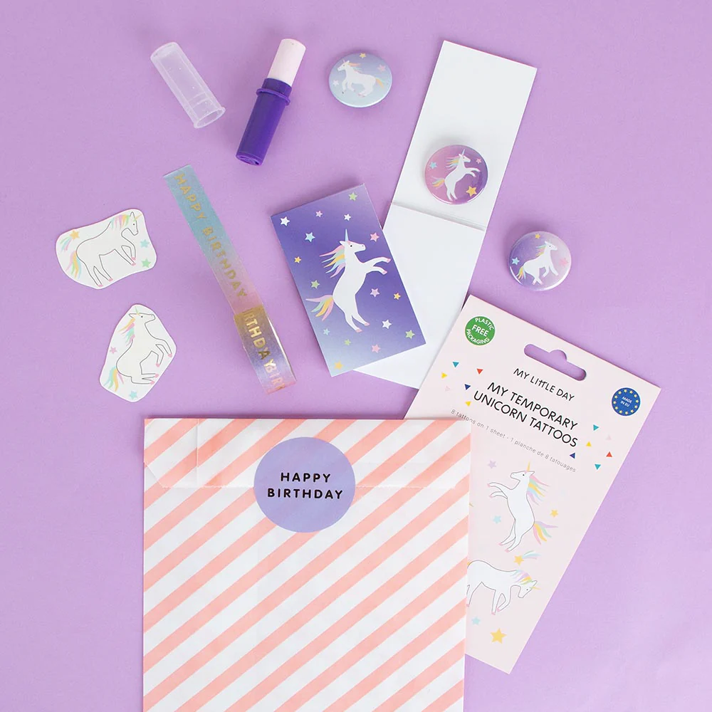 Embarquez avec My Little Day, direction le monde merveilleux des licornes ! Un badge licorne parfait pour faire un petit cadeau d’anniversaire, une surprise de calendrier de l’Avent ou pour garnir une pinata. Idéal pour un anniversaire licorne.