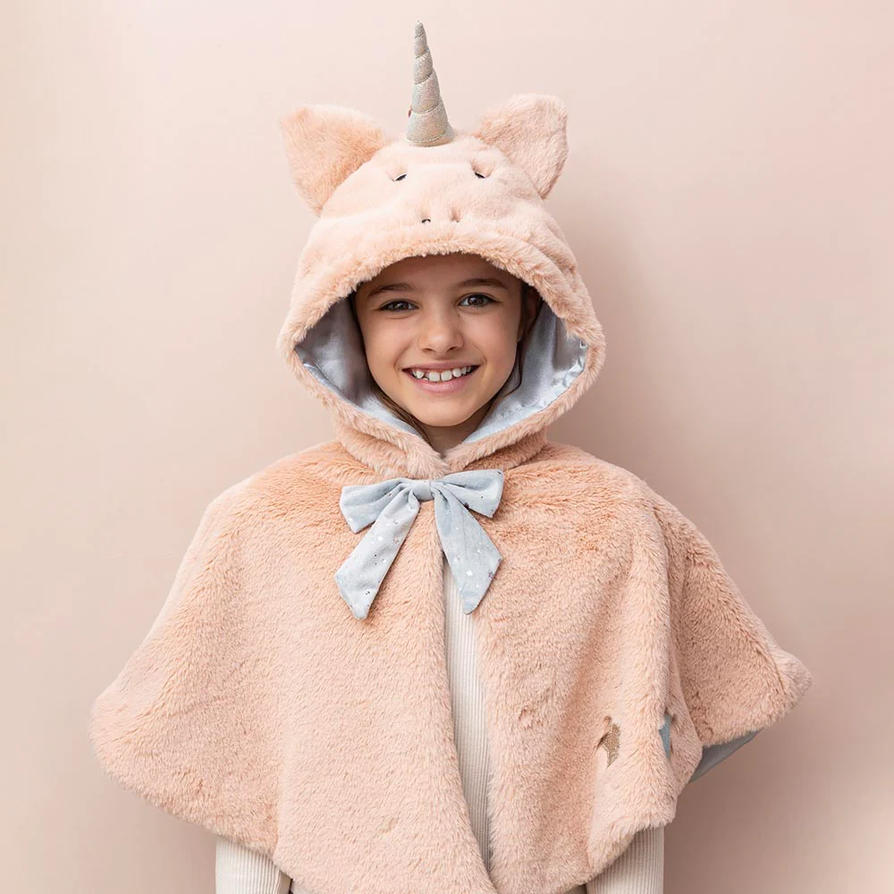 Ajoutez une touche de magie au quotidien avec cette adorable cape licorne. Toute douce et pleine de détails féériques, elle est parfaite pour réchauffer les petites rêveuses tout en les plongeant dans un univers enchanté. Idéale pour un anniversaire, un déguisement ou simplement pour jouer à la maison. 🦄✨