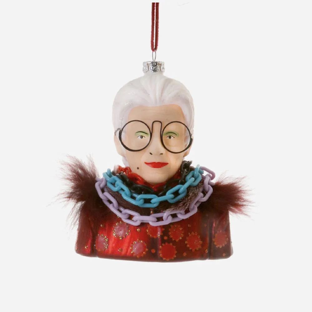 Ajoutez une touche de glamour et d’originalité à votre deco sapin de Noël avec cette boule de Noël Iris Apfel, la reine de l’excentricité et du style. Avec ses 12,7 cm de hauteur, cet ornement de Noël (comme elle) ne passera pas inaperçu ! Parfait pour ceux qui veulent une decoration sapin de Noël qui sort des sentiers battus, cette pièce est aussi une idée cadeau de noel ou cadeau Secret Santa pour les amateurs de mode et de design. Faites de votre sapin une icône de style cette saison !