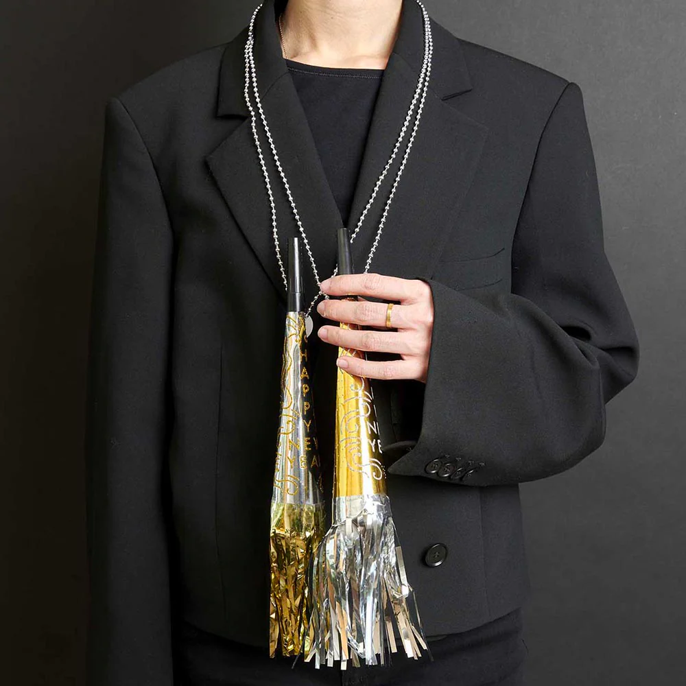Vous organisez le RĂ©veillon du Nouvel an chez vous ? Une grande soirĂ©e entre amis ou en famille est Ă l’horizon ? Vous aurez besoin d’accessoires et de cotillon Nouvel an comme ces grands sifflets de fĂȘte avec chaĂźnette qui vous accompagnerons jusqu’au bout de la nuit !