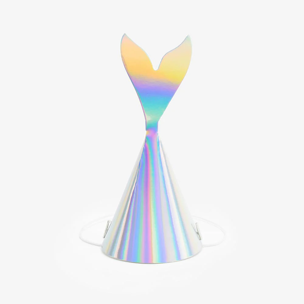 En papier iridescent qui brille de 1 000 feux, ce chapeau est parfait pour un anniversaire sirène.