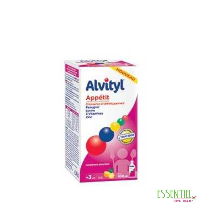 - Favoriser la croissance grâce aux vitamines B et D et au Zinc.Avec sa formule exclusive, Alvityl Appétit est le premier produit naturel qui associe le Fenugrec et la Lysine dans une seule formule complète.Son goût est apprécié par les enfants : 8 enfant sur 10 jugent que le sirop a bon goût.
