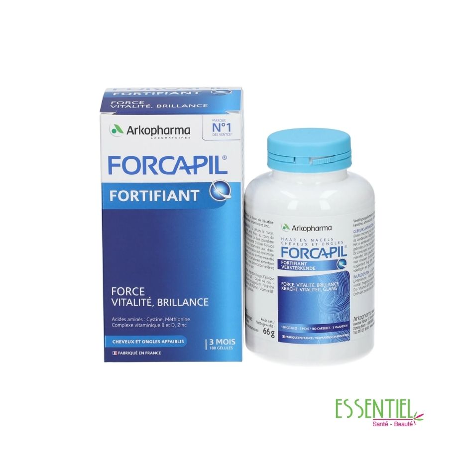 Le cheveu est principalement constitué de kératine, protéine qui lui confère élasticité, résistance et brillance. Elle est synthétisée à partir des acides aminés soufrés, la cystine et la méthionine, sous l’action du zinc et des vitamines du groupe B. La kératine est également un constituant majeur de l’ongle. Forcapil cheveux et ongles des laboratoires Arkopharma contient une formule complète avec des acides aminés soufrés (cystine et méthionine), des vitamines et des minéraux. Le zinc contribue à la synthèse normale des protéines, comme la kératine. La vitamine B8 contribue au maintien de cheveux en bonne santé, souples, brillants et résistants. Le zinc contribue également à conserver de beaux ongles.