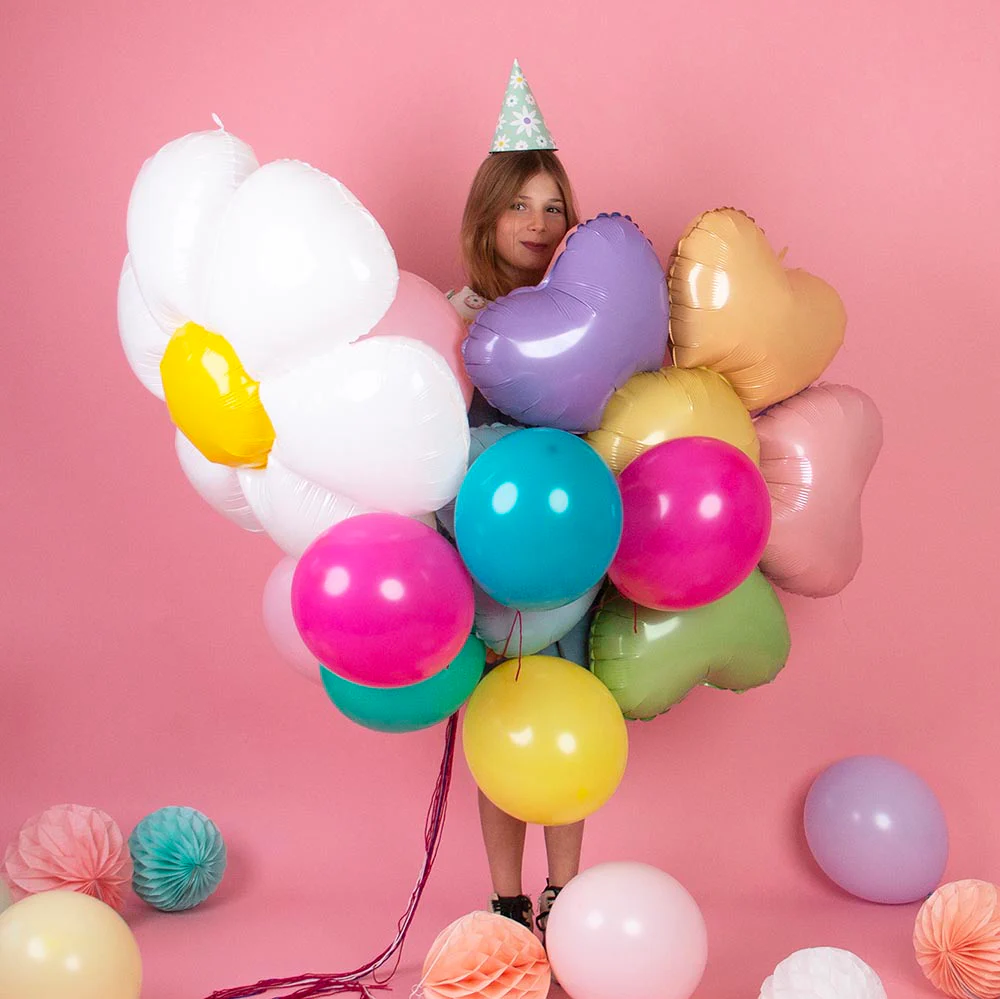 Un ballon fleur pastel à gonfler à l’air (à l’aide d’une paille) ou à l’hélium pour qu’il flotte. Ce ballon aluminium est parfait pour compléter une décoration d’anniversaire fleurs ou déco de Pâques.