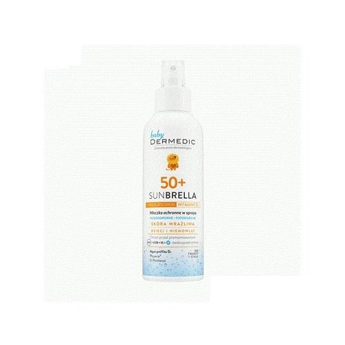 Dermedic baby Sunbrella Lait pour enfants fournit une protection très élevée, efficace et durable contre les rayons UVA, UVB, VL et IR – SPF 50+ Empêche les coups de soleil et la décoloration protège l’ADN des cellules de la peau