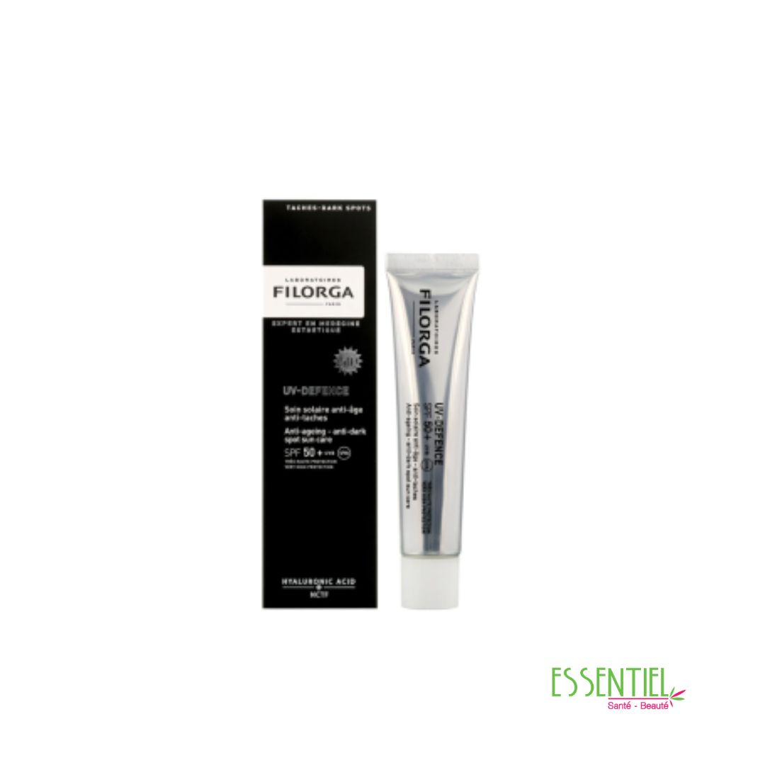 Filorga UV-Defence SPF50+ est un soin solaire nouvelle génération, spécialement formulé pour protéger la peau des facteurs majeurs de vieillissement cutané : rayons UVA/UVB, lumière bleue, taches pigmentaires et inflammations.