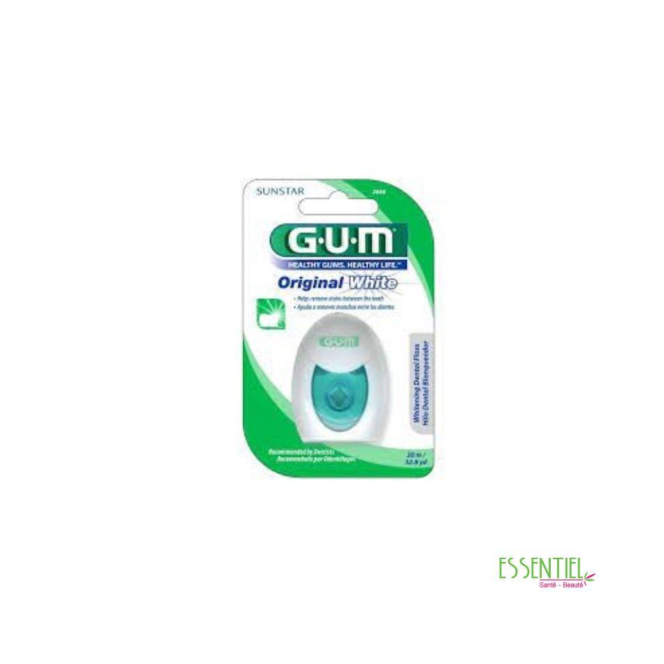 LLe fil dentaire gum original white aide à éliminer les colorations dans les espaces interdentaires inaccessibles avec une brosse à dents. Retire efficacement la plaque dentaire entre les dents et sous la gencive pour des dents et des gencives plus belles et plus saines. Longueur : 30 mètres.
