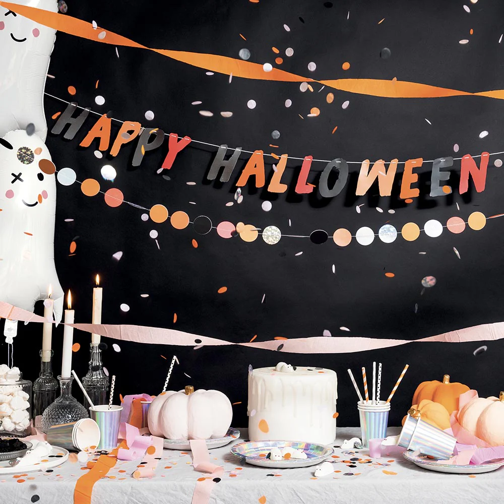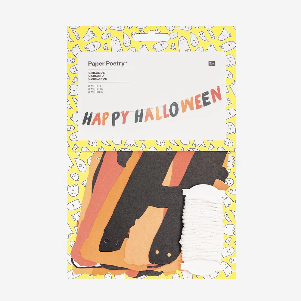 – Guirlande Happy Halloween – Dimensions : 3m Vous organisez une fête pour Halloween ? Cette guirlande sera parfaite pour décorer votre évènement ! Accrochez-la à un mur, un encadrement de porte ou encore au-dessus de votre buffet de friandises !