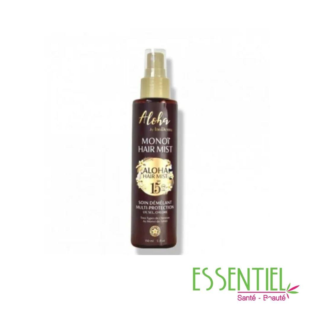 ALOHA by InoDerma MONOI HAIR MIST est un démêlant conditionnant au Monoï de Tahiti pour tous types de cheveux. Avec sa formule légère et non grasse, il hydrate la tige du cheveu et le cuir chevelu sans les alourdir. Aloha Hair Mist SPF 15 protège des rayons UVA et UVB, du sel et du chlore.