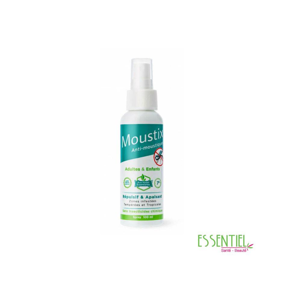Spray Anti-Moustiques Répulsif et Apaisant pour adultes et enfants. Grâce à sa formule naturelle à base de 5 huiles essentielles aux puissantes propriétés répulsives et anti-inflammatoires, Moustix est l’allié idéal pour éloigner les moustiques et éviter les douleurs et démangeaisons en cas de piqûres.
