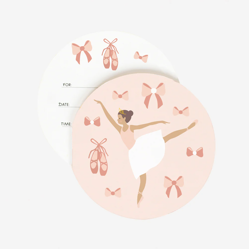 🩰 8 cartes d’invitation ballerine + 8 stickers