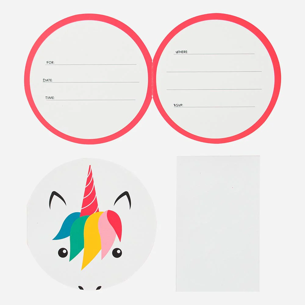🦄 8 cartes d’invitation licorne mini + 8 stickers