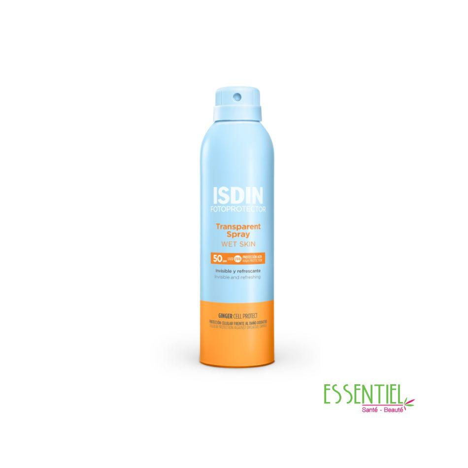 - ISDIN Fotoprotector Transparent Spray Wet Skin SPF50+ est le seul spray de très haute protection applicable sur peau humide.