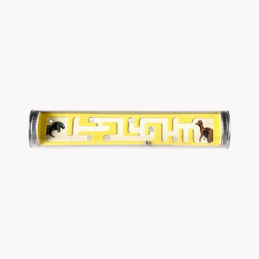 Jeu d’adresse Mini Labyrinthe dino Dimensions : 15cm x 2,5cm Mini labyrinthe version préhistorique ! Le but du jeu est simple : se faire rejoindre les deux dinosaures. Un petit jouet parfait à faire gagner à un jeu de pêche à la ligne ou dans une piñata lors d’un anniversaire.