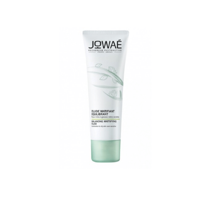 Jowaé Fluide Matifiant Équilibrant 40 ml est un soin anti-brillance pour peaux mixtes à grasses à base de Lumiphénols antioxydants et de Lotus Sacré.