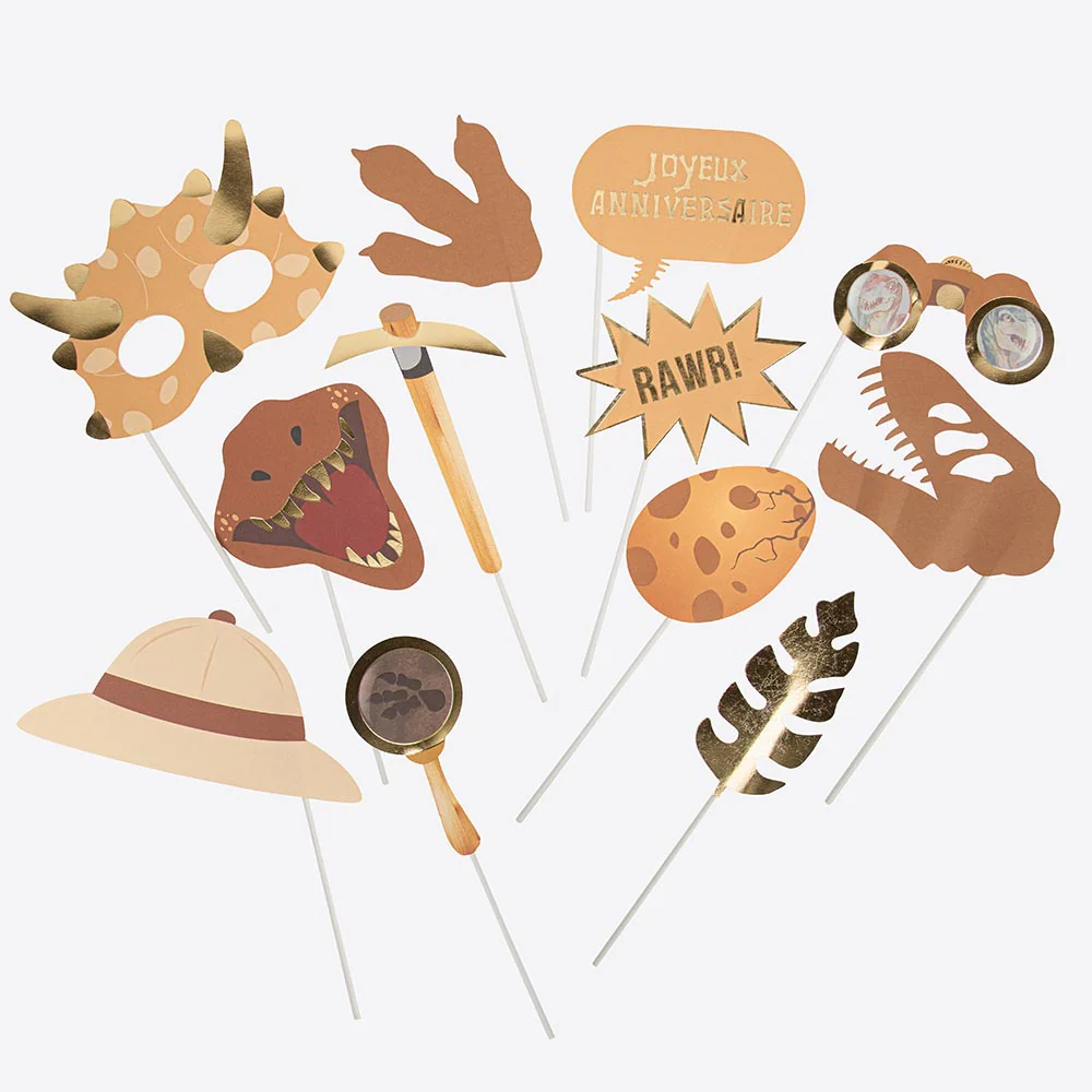 – Kit Photobooth Dinosaure– Coloris : choco, camel, Ivoire et or– 12 Pièces Vous organisez un anniversaire dinosaure ? Une fête sur le thème du jurassique ? Ce kit photobooth dinosaure sera parfait comme animation ! Les enfants adorent jouer et se déguiser, prenez plein de photos pour créer de super souvenirs.