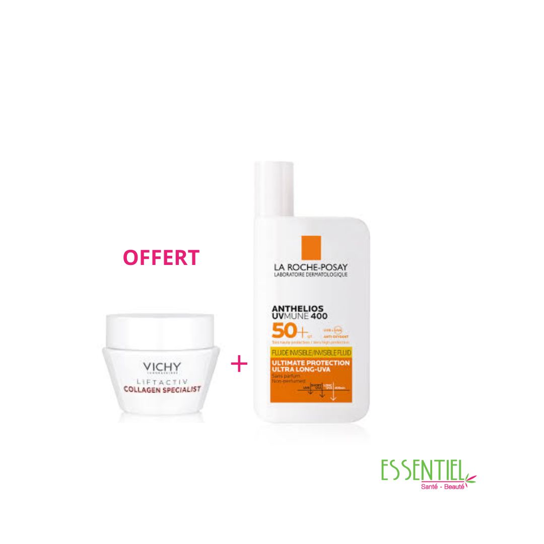 La crème solaire fluide invisible UVMUNE 400 à l’eau thermale de La Roche-Posay est un soin visage SPF50+.