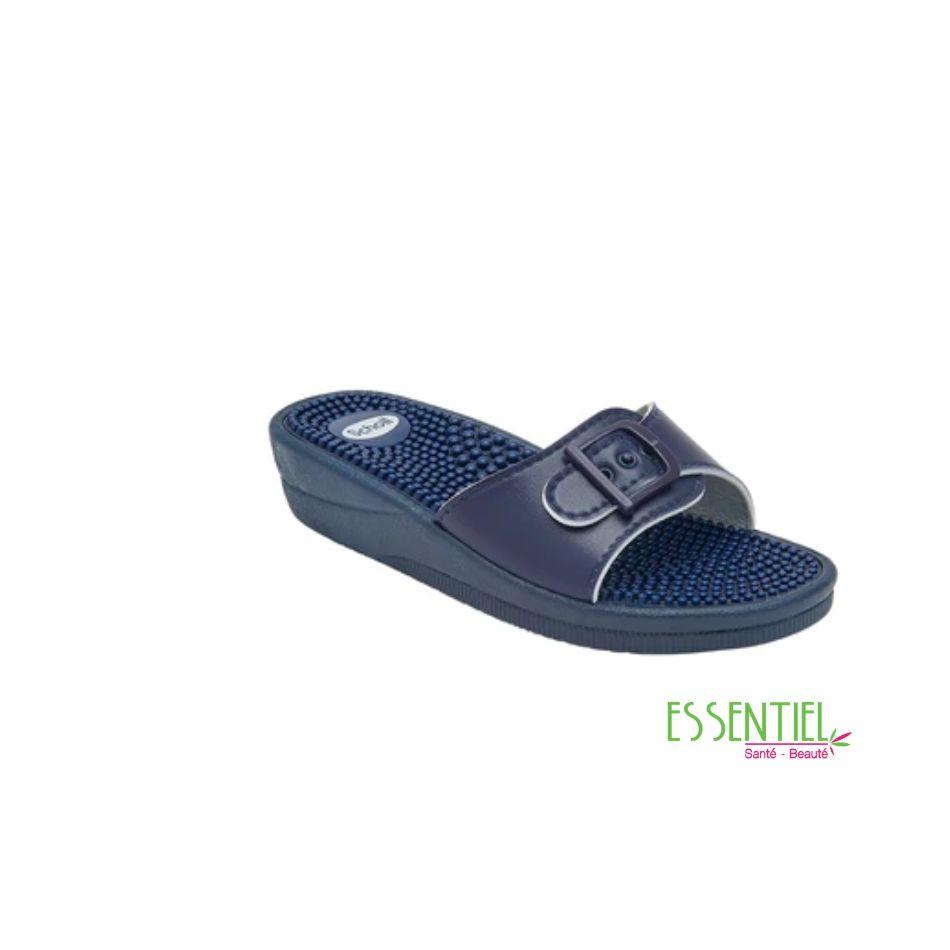 New Massage est une mule avec un dessus en PVC, doté d’une boucle en métal, pour que la chaussure s’adapte parfaitement au pied. Un modèle pratique, parfait pour la plage mais aussi pour la salle de sports, la piscine et le centre de bien-être.