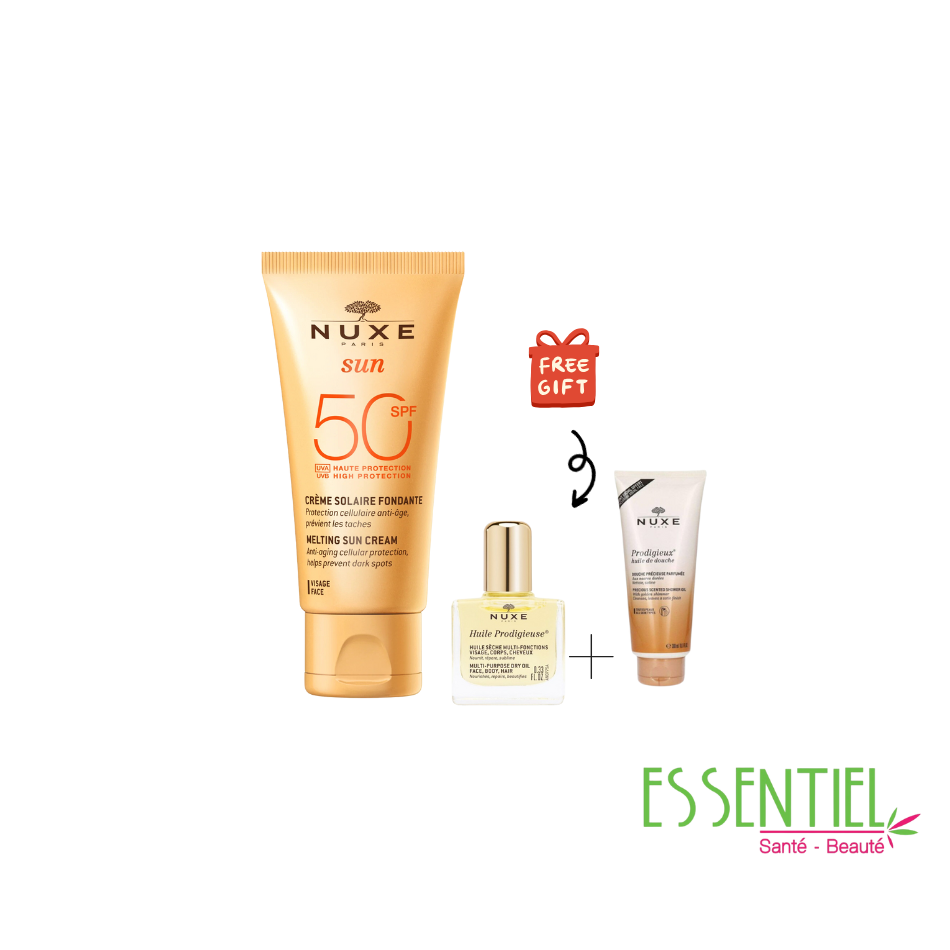 Ce mini Pack prodigieux qui contient la crème fondante 50ml comme un produit nécessaire pour l’été avec sa finition adorable et ça touche résistante a l’eau , prévient les taches et donne une protection cellulaire anti-âge.