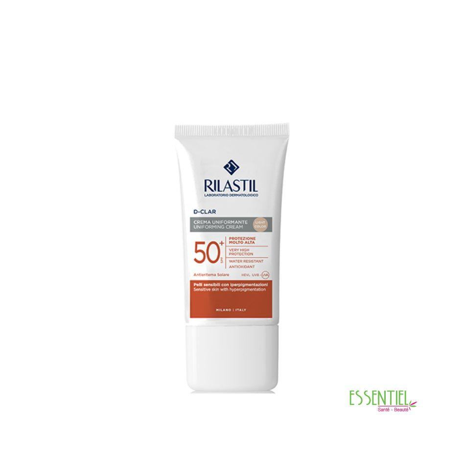 RILASTIL D-CLAR Crème photo protectrice à la texture veloutée spécialement formulée avec le Complexe Claritech, pour prévenir et combattre la formation de taches brunes. Ses pigments unifiants permettent de dissimuler l’hyperpigmentation pour assurer un teint unifié.