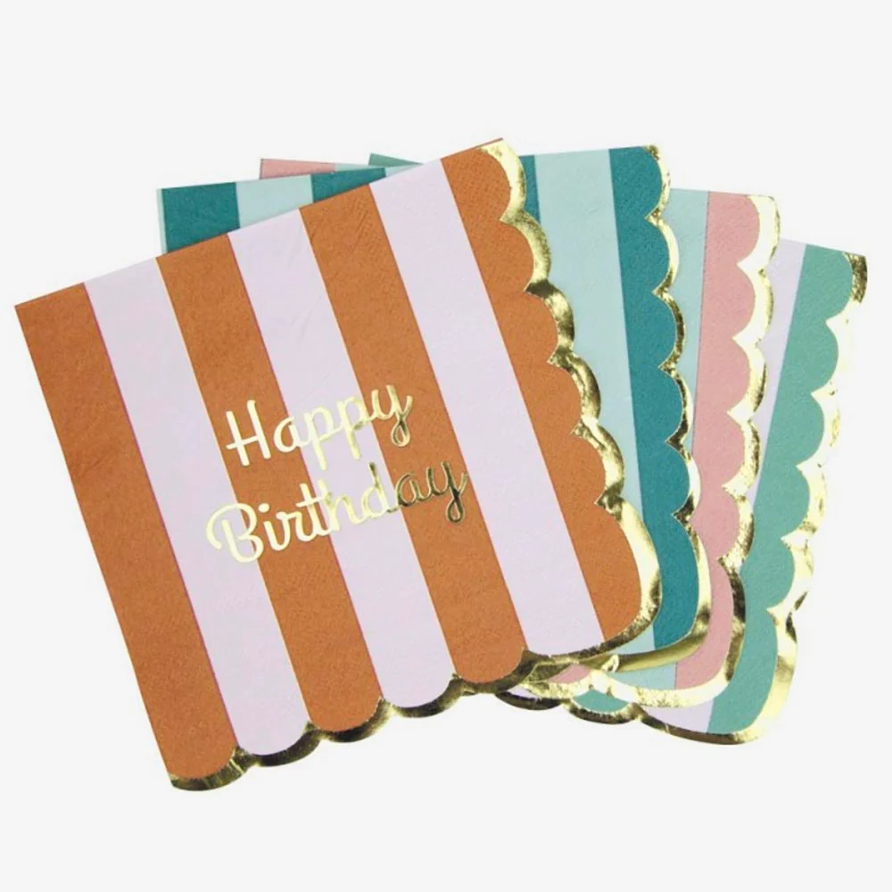 🍽️ 16 serviettes Happy Birthday pastel