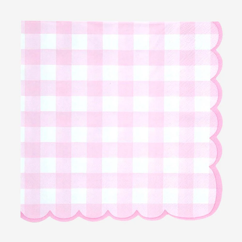 Serviettes en papier : 16 serviettes vichy rose pastel