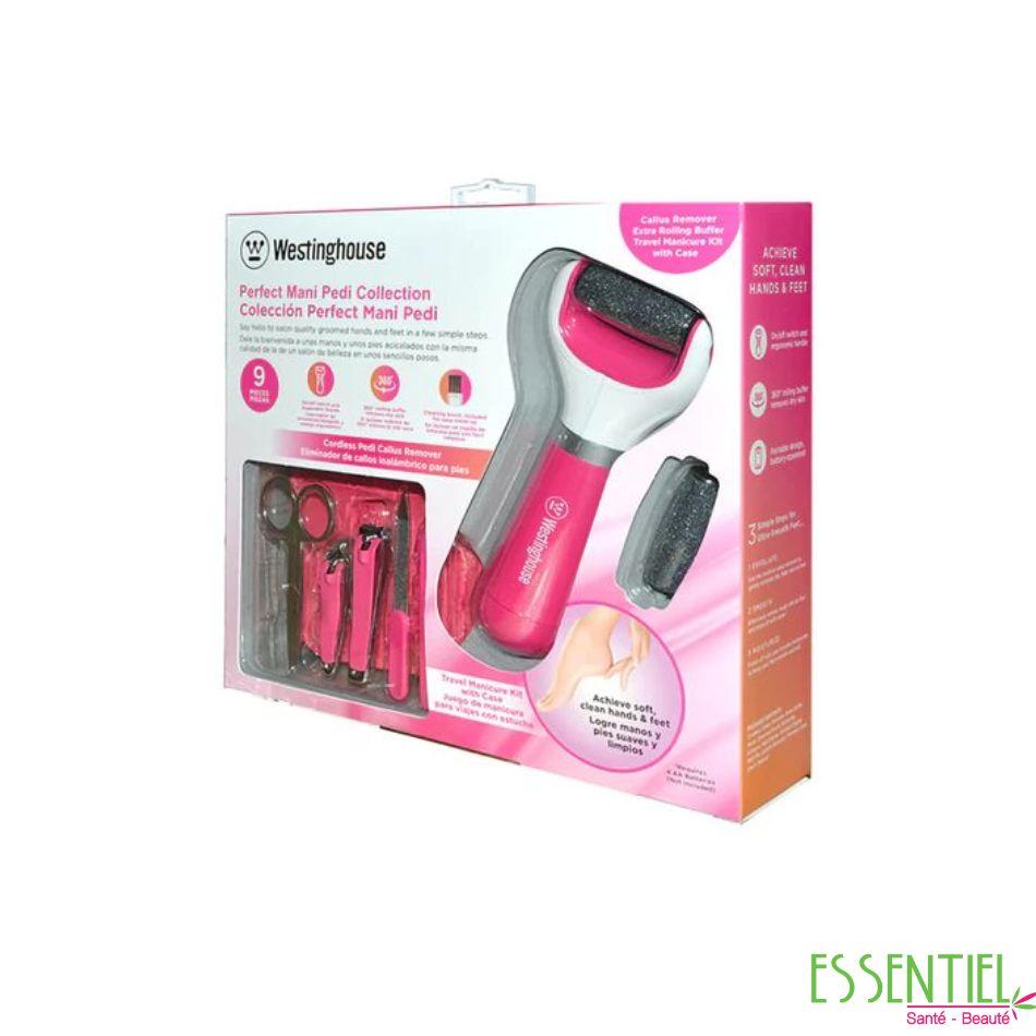Set De 9 Pièces WESTINGHOUSE – Râpe électrique rechargeable et trousse manucure pédicure – Utilisation: Sans Fil – Alimentation: 4 piles AA (non incluses) – Tampon roulant à 360° (1 supplémentaire inclus) – Obtenez des pieds doux et beaux en seulement quelques minutes – Élimine efficacement les peaux dures et sèches et les callosités – Utilisation sûre et facile grâce à la poignée ergonomique – Couleur: Rose