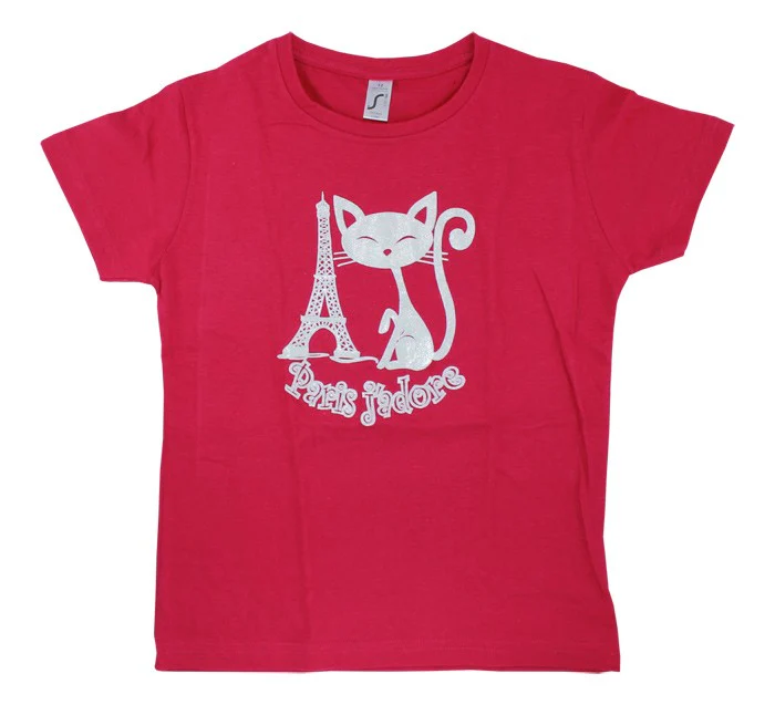 T-shirt Enfant Paris J’adore rose à paillettes.