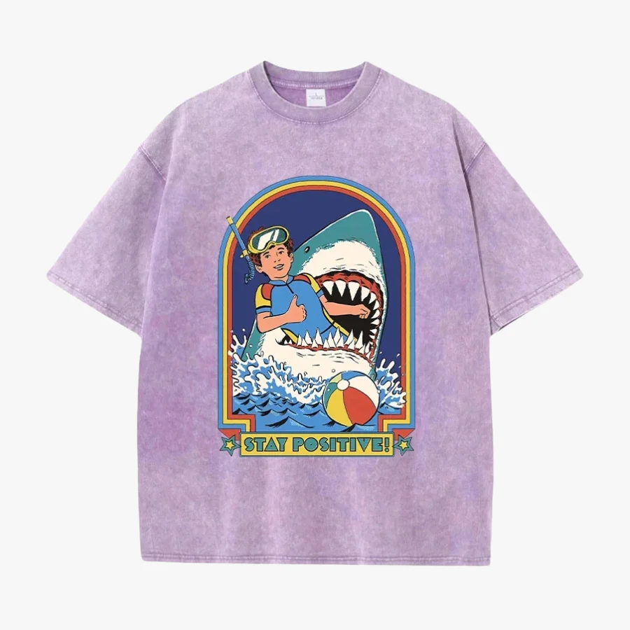 Adoptez une attitude optimiste avec le T-Shirt STAY POSITIVE, un essentiel du streetwear qui allie style décalé et attitude positive ! Si vous souhaitez un look hors du commun, ce t-shirt est fait pour vous. Qu’importe les imprévus, un requin, un rendez-vous annulé, le t-shirt stay positive sera là pour vous donner le sourire !