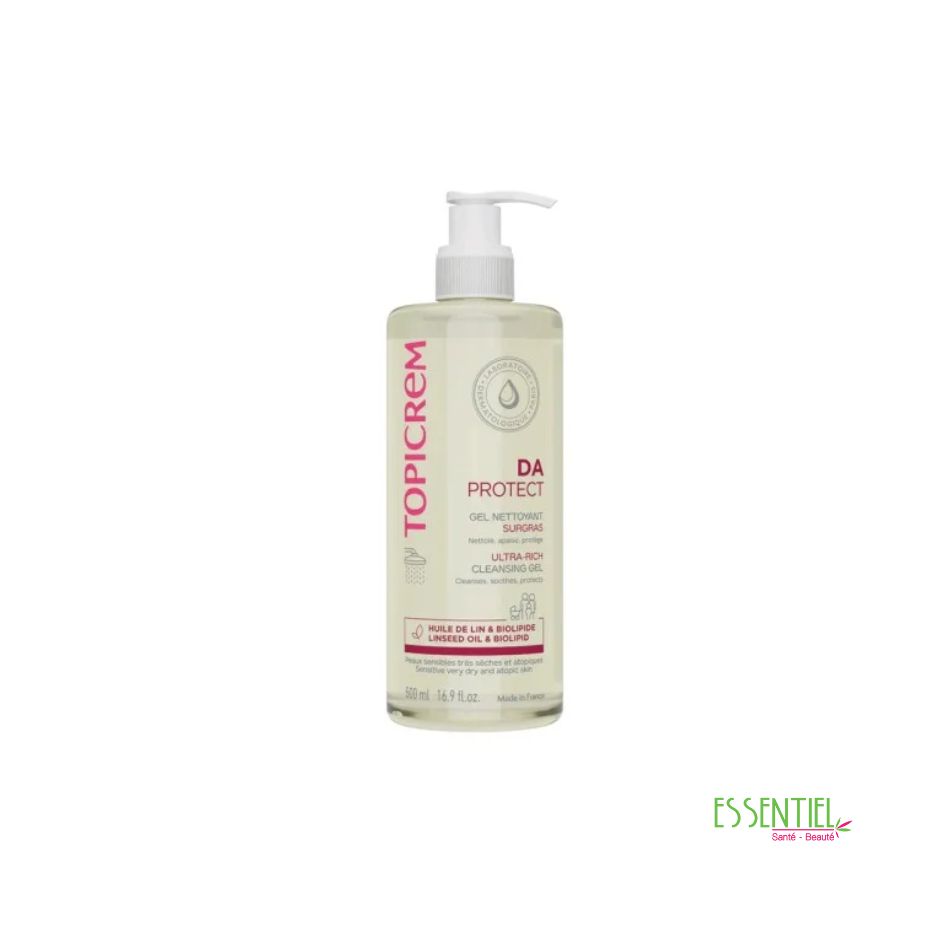 Topicrem Peaux Atopiques DA Gel Nettoyant Surgras 500 ml nettoie, apaise et protège le visage et le corps des peaux sensibles très sèches et atopiques.
