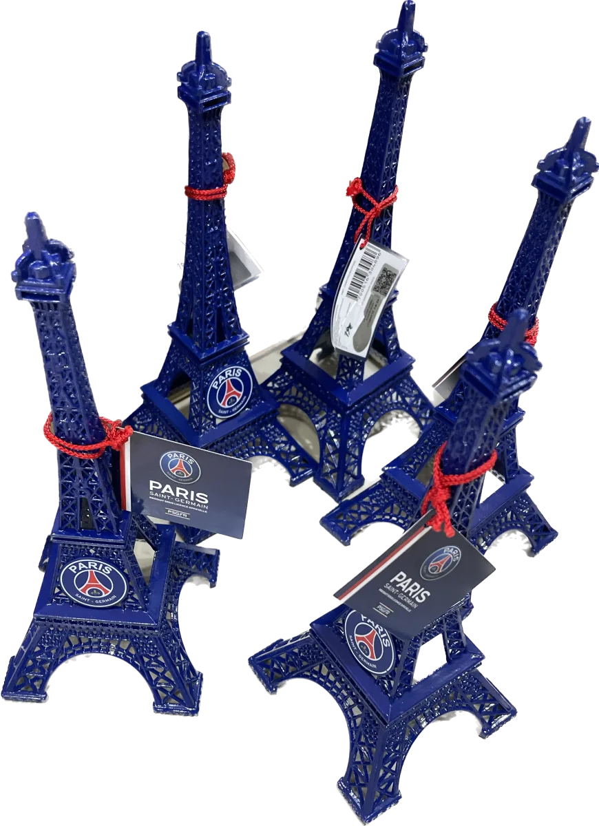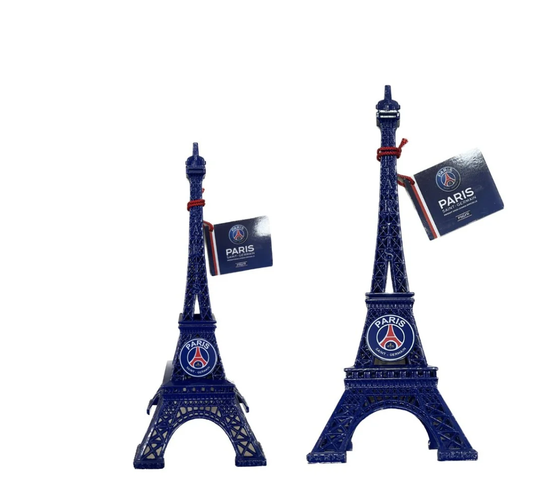 Montrez votre soutien au PSG avec cette réplique de la tour Eiffel aux couleurs du Paris Saint-Germain. Disponible en plusieurs tailles, elle est parfaite pour les fans de football qui souhaitent apporter une touche parisienne à leur décoration.
