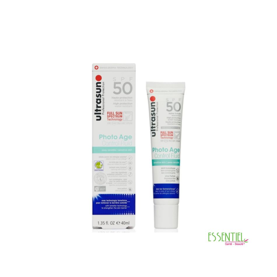 ULTRASUN PHOTO AGE CONTROL FLUID SPF50 est idéal pour les peaux sensibles (protection solaire et hydratation du visage, du cou et du décolleté) et pour peaux à tendance acnéique : non comédogène et non allergique (ne provoque pas de colmatage ni de réaction allergique).
