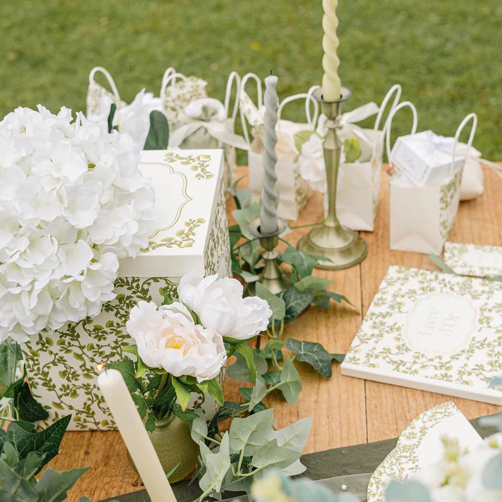 🏷️ Urne💚 Couleurs : pistache, crème et or📏 Dimension : 21 x 25 cm Cette urne de mariage sauge s’intégrera à merveille dans une déco mariage bohème ou botanique, anniversaire ou baptême. Elle est ornée de petites brindilles et de l’inscription « merci » en doré. Vos invités pourront y glisser enveloppes et petits mots de félicitations […]