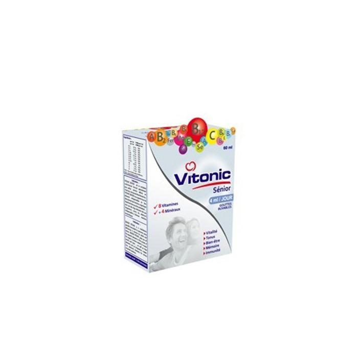 VITONIC SENIOR est un complexe multivitaminé formulé spécialement pour pallier certains déficits en vitamines chez les adultes et les séniors. VITONIC SENIOR vous apporte tous les éléments indispensables au bon déroulement des fonctions organiques liées à l’activité musculaire, et cérébral , ainsi que des oligo-éléments tels que (magnésium, cuivre, fer, sélénium) indispensables à diverses réactions enzymatiques. 9 vitamines et 4 minéraux aux quels nous avons associés des omega3 qui interviennent au niveau de l’intégrité des membranes cellulaires, et au niveau du système immunitaire, vasculaire, cardiaque, cérébral.