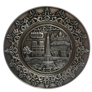 Assiette Souvenir de Paris – Métal Vieil Argent en Relief