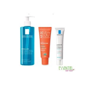 Routine peau grasse avec imperfections la roche posay Effaclar gel nettoyant+duo+ & SVR sun secure fluide 50+