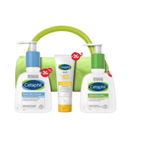 cetaphil trousse Nettoyant peaux sensibles +Lotion liposomale spf50+& crème hydratante