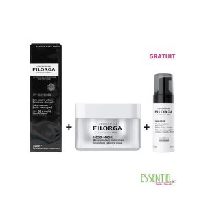 PACK FILORGA MESO-MASK MASQUE LISSANT ILLUMINATEUR, 50ML+SOIN SOLAIRE UV-DEFENCE 40ML+ MOUSSE NETTOYANTE SKIN-PREP 30ML GRATUITE