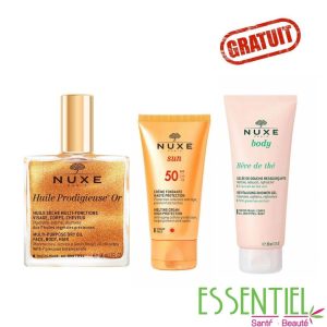 NUXE LOT HUILE PRODIGIEUSE OR 100ML +CREME FONDANTE SPF 50 =GELEE DE DOUCHE REVE DE THE GRATUIT
